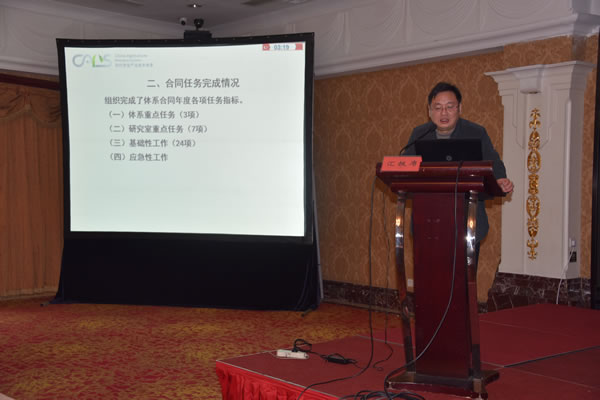 首席科學(xué)家楊亞軍研究員匯報(bào)了體系年度工作進(jìn)展,他從對產(chǎn)業(yè)的支撐情況、合同任務(wù)完成情況、扶貧工作情況、體系組織管理工作情況、經(jīng)費(fèi)使用情況5個(gè)方面全面總結(jié)了2017年體系開展的各項(xiàng)工作和取得的主要成績。隨后,各研究室主任、崗位科學(xué)家和試驗(yàn)站站長分別進(jìn)行了述職匯報(bào)。