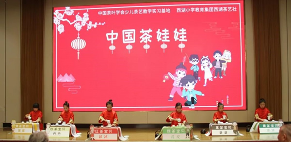 茶話會上,來自中國茶葉學會少兒茶藝教學實習基地、杭州西湖小學的六位小茶童,以“六茶寶貝”的形象登臺。悠揚的樂聲響起,娃娃們用童音唱響原創茶歌《中國茶娃娃》,暖暖茶香融入音符之中,現場一片喜樂融融。樂聲漸息,小茶童們捧起茶杯,下臺,行禮,為在座老茶人一一奉上暖茶。這是一杯中華文明的傳承之茶,也是敬賀新年的喜樂之茶。隨后文藝工作者們還表演了團扇舞韻、越劇《十八相送》、魔術、江南絲竹等精彩節目。