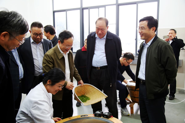 3月21日下午,中國國際茶文化研究會會長、省政協原主席周國富,省政協副主席陳小平等領導赴我所嵊州茶葉綜合實驗基地考察調研。我所黨委書記姜仁華、副所長江用文以及嵊州市有關領導陪同調研。基地辦負責同志介紹了基地基本情況。