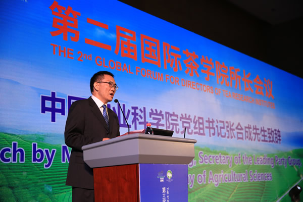 中國農科院黨組書記張合成在講話中指出,在亞洲文明對話大會在北京開幕的時間節點,召開第二屆國際茶學院所長會議,意義顯得格外特殊。他肯定了我所在引領茶學科建設、支撐茶產業發展方面攻堅克難、主動作為、發揮的科技引領作用、取得的成果。他講到,中國既是世界最大的產茶國,也是最大的消費國。茶葉已成為中國重要的經濟作物,在提高農民收入、增加農業效益,以及鄉村振興、精準扶貧等方面發揮著非常重要的作用。他希望以本次會議為契機,各國科學家加深合作,發揮不同國家的比較優勢,在對話協商、共建共享、合作共贏、交流互鑒的過程中,共商茶葉產業科技的創新和發展,互相借鑒有益經驗,探索新型合作模式,催生更多項目、人才方面的務實合作,進一步提升茶葉科技創新能力和國際影響力。