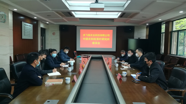 在雙方交流座談會上,許夕峰董事長詳細介紹了農飛客農業科技有限公司的基本情況,特別是近年來與我所的良好合作,促進了茶園飛防業務的快速發展,希望能夠繼續加強協作,進一步深耕茶園飛防服務。