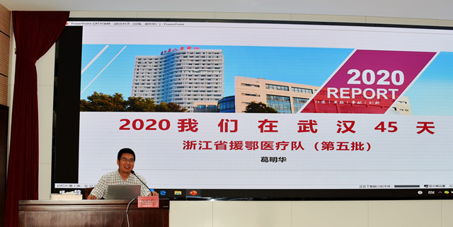 7月20日,我所邀請全國人大代表、浙江第五批援鄂醫療隊隊長、浙江省人民醫院葛明華院長來所作抗疫先進事跡報告會。所長、黨委書記姜仁華主持報告會。會議以視頻形式進行,全所150多名職工、研究生在3個會場認真聽取了報告。