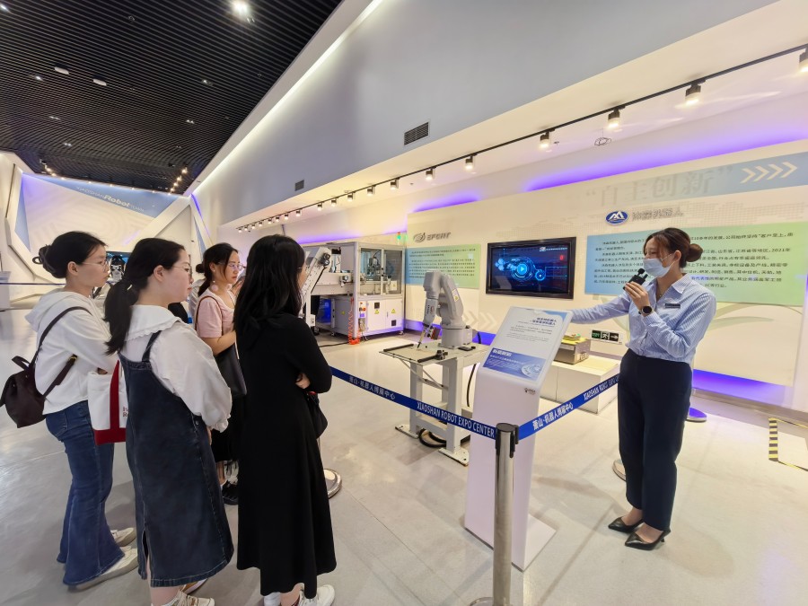 蕭山機器人博展中心是浙江省首個機器人專業展示體驗中心,是展示機器人科技前沿水平的重要平臺。在講解員的帶領下,大家走進博展中心,沉浸式體驗前沿科技,感受中國智造的魅力,點贊新時代青年的擔當。跳舞機器人、消防機器人、書法機器人和3D打印等“現場表演”,讓大家紛紛贊嘆,同時感受到中國在機器人領域取得的飛速進步與巨大成就。