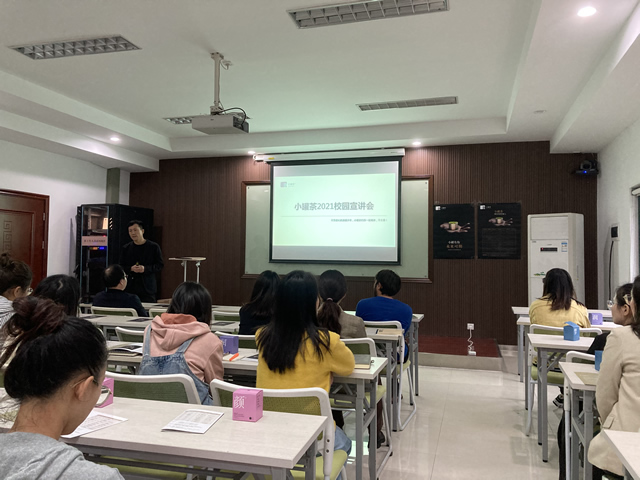 小罐茶副總裁曹衛對小罐茶的企業文化、公司產品、人才政策等方面進行了宣講,并對目前茶葉行業的發展進行了分析,還與同學們進行了交流分享。在招聘環節中,畢業班同學積極投遞了簡歷,并現場進行了面試。