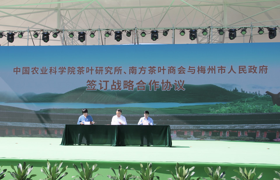 11月1日,在第三屆廣東茶葉產(chǎn)業(yè)大會開幕式上,我所與梅州市人民政府簽署促進梅州茶產(chǎn)業(yè)發(fā)展戰(zhàn)略合作協(xié)議,副所長魯成銀和梅州市副市長溫向芳分別代表雙方簽字。廣東省政府副秘書長鄭偉儀,廣東省農(nóng)業(yè)農(nóng)村廳廳長顧幸偉、副廳長馮彤,梅州市委書記陳敏、市長張愛軍,陳宗懋院士、劉仲華院士等領導和專家出席。