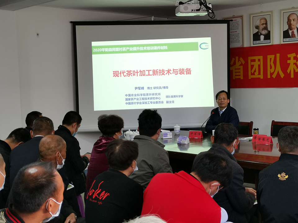 團(tuán)隊一行實地指導(dǎo)茶園建設(shè)和管理技術(shù),并為同盟村50多名茶農(nóng)講授適用茶樹品種與生態(tài)栽培技術(shù)、現(xiàn)代茶葉加工新技術(shù)和設(shè)備、黃湯加工技術(shù),還贈送了《名優(yōu)綠茶機(jī)械化采制技術(shù)與裝備》一書,鼓勵茶農(nóng)科學(xué)種茶制茶,促進(jìn)周邊茶農(nóng)和低收入農(nóng)戶增收致富。