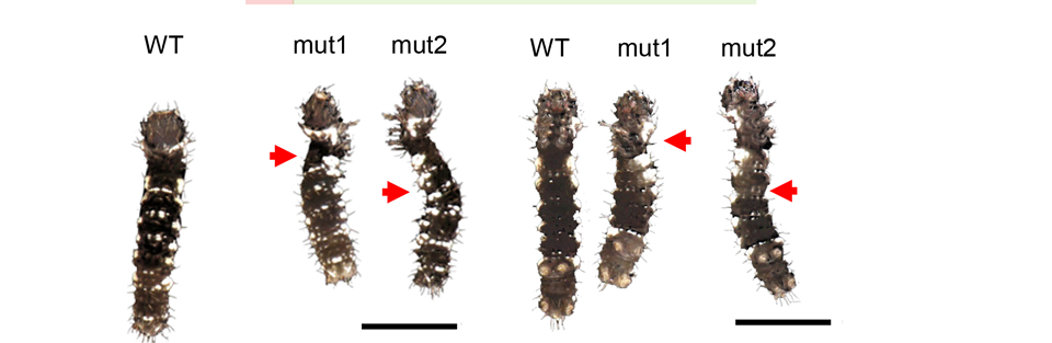 圖3. 敲除灰茶尺蠖Abd-A基因后獲得體節變異突變體