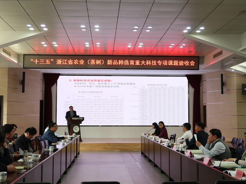 受浙江省科技廳委托,3月26-27日,由我所牽頭的浙江省“十三五”農(nóng)業(yè)(茶樹)新品種選育重大科技專項課題驗收會在我所召開。驗收會由協(xié)作組首席專家楊亞軍研究員主持,各課題主持人及科研骨干共30余人參加了會議。浙江省科技廳農(nóng)村處錢玉紅處長到會指導。