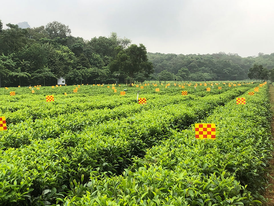 2010年前后,陳宗懋團(tuán)隊(duì)發(fā)現(xiàn)我國(guó)茶園常用的黃色粘蟲(chóng)板顏色差異大,缺乏靶標(biāo)針對(duì)性,不同產(chǎn)品的誘殺效果參差不齊。他提出通過(guò)可數(shù)字化的顏色篩選茶小綠葉蟬最佳誘捕色,研發(fā)出了茶小綠葉蟬、茶棍薊馬等害蟲(chóng)的數(shù)字化色板,并獲中國(guó)專(zhuān)利優(yōu)秀獎(jiǎng)。經(jīng)過(guò)大面積應(yīng)用之后,數(shù)字化單色板暴露出“殺敵一千自損八百”的缺點(diǎn),在使用過(guò)程中會(huì)殺傷一定數(shù)量的天敵昆蟲(chóng)。為了解決這個(gè)問(wèn)題,陳宗懋團(tuán)隊(duì)又從昆蟲(chóng)視覺(jué)生理出發(fā),創(chuàng)制出天敵友好型雙色誘蟲(chóng)板,降低了40%的天敵誤殺量。