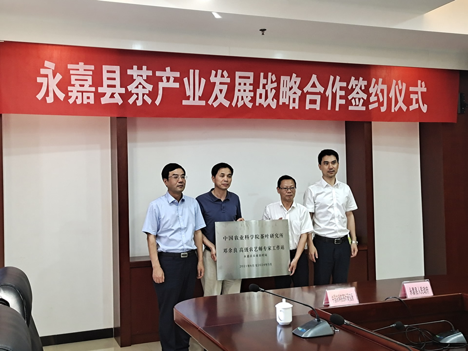 6月22-23日,所長、黨委書記姜仁華帶領專家團隊赴溫州市永嘉縣調研茶產業發展,并與永嘉縣政府簽訂戰略合作協議。作為深化所地合作的紐帶,我所鄧余良專家工作站同時舉行授牌儀式。