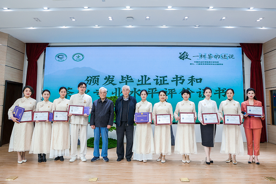 茶會之際,老師們為圓滿完成學業的各位學員頒發了畢業證書及各類榮譽證書。學員代表分別發表感言,感恩所有關心、鼓勵、支持他們的師長與同學們。據悉,學員們中1人獲“全國技術能手”,1人榮獲“全國青年崗位能手”,6人榮獲省級技術能手,6人榮獲省、市級(青年)工匠,2人成為市級茶藝技能大師工作室領辦人,3人被評為市、縣級非遺傳承人。