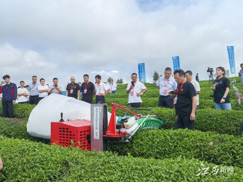 參會嘉賓觀摩體驗出口茶園機械化作業。攝影∣江西日報全媒體記者徐黎明