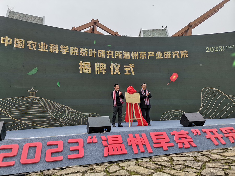 為深入貫徹落實習近平總書記關于茶產業發展重要指示精神,助推溫州“一片葉”產業發展重點任務,支撐并提升溫州茶產業綜合競爭力,2月20日,我所與溫州市人民政府簽訂戰略合作協議,并正式成立“中國農業科學院茶葉研究所溫州茶產業研究院”,持續深化所市合作,探索科技支撐茶產業發展的新模式。溫州市人民政府王彩蓮副市長、我所姜仁華所長分別代表雙方簽訂戰略合作協議,隨后還進行了“中國農業科學院茶葉研究所溫州茶產業研究院”揭牌儀式。