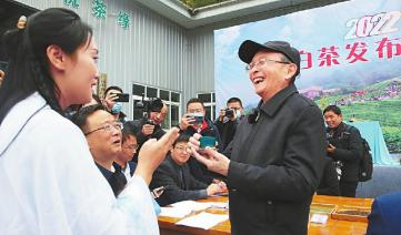 在采茶儀式后的品茶活動(dòng)現(xiàn)場,茶藝師取出此前預(yù)制好的青川白茶泡好,倒出第一杯,敬給一位精神矍鑠的老人。老人叫白堃元,今年82歲,曾任中國農(nóng)業(yè)科學(xué)院茶葉研究所副所長。自1997年開始浙江對口幫扶廣元,派白堃元到青川,為種茶、制茶提供技術(shù)幫助。在浙川兩地間往來奔波25年,老人“手把手”將浙江優(yōu)勢茶產(chǎn)業(yè)“嫁接”到青川。“白葉一號(hào)”茶苗進(jìn)入青川后,白堃元又參與到白茶管護(hù)中。如今,茶產(chǎn)業(yè)已成為青川縣農(nóng)業(yè)“一號(hào)產(chǎn)業(yè)”,全縣茶葉種植面積達(dá)27.4萬畝?!翱诟胁诲e(cuò),鮮爽味很好。”喝下感恩茶,白堃元感慨,這些年目睹青川茶產(chǎn)業(yè)由小到大、由弱到強(qiáng),“其中滋味酸甜苦辣,但今天品到的是回甘?!?/p>