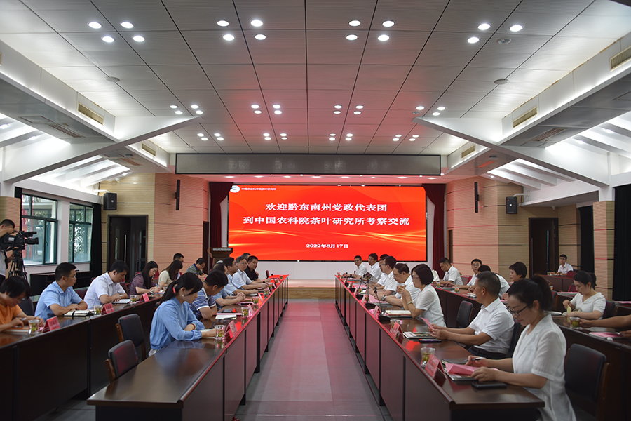 姜仁華所長歡迎羅強書記一行來所調研考察,并介紹了我所近年來的主要科研成果和幫扶臺江工作情況。他表示,我所將堅決貫徹落實中組部、院黨組幫扶臺江的工作部署,充分發揮科技人才資源優勢,全方位支持臺江茶產業高質量發展,為茶農增產增收提供堅實科技支撐。