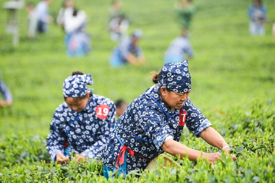 4月2日,第二屆“永川秀芽杯”川渝合作瀘永江產(chǎn)業(yè)帶采茶大賽上,選手在重慶市永川區(qū)永榮鎮(zhèn)白云寺村鄉(xiāng)村振興就業(yè)園茶葉采摘區(qū)采茶。新華社記者王全超 攝