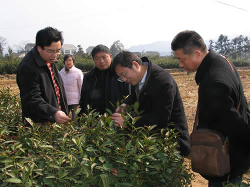 在察看了高橋茶葉試驗(yàn)場(chǎng)茶樹(shù)受災(zāi)現(xiàn)場(chǎng)后,楊亞軍所長(zhǎng)就如何做好下一步的救災(zāi)工作與有關(guān)人員進(jìn)行了交流。楊所長(zhǎng)指出,盡管持續(xù)的雨雪冰凍,影響了我們當(dāng)年茶樹(shù)種質(zhì)資源的利用試驗(yàn),但重要的是要著眼于今后的利用,保護(hù)好不可多得的種質(zhì)資源。同時(shí),楊所長(zhǎng)要求認(rèn)真調(diào)查記錄這次茶樹(shù)新品種比較試驗(yàn)中受凍害的情況,為今后抗寒茶樹(shù)品種的選育提供基礎(chǔ)數(shù)據(jù);另一方面,要盡早安排重新栽植區(qū)試中受凍的品種茶苗,確保將凍害對(duì)試驗(yàn)的影響降到最低限度。