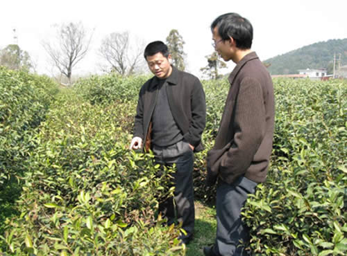 在徐所長的陪同下,實地考察了無錫茶樹品種園的受災情況。隨后趕往無錫市八士斗山茶場,就其在“救災熱線”上詢問的幾個問題進行了調查解答,現場指導茶樹災后恢復生產技術,并向該茶場贈送了中國農科院茶葉研究所編制的《茶樹雪災凍害后恢復生產技術措施》掛圖等資料,受到該茶場的歡迎。